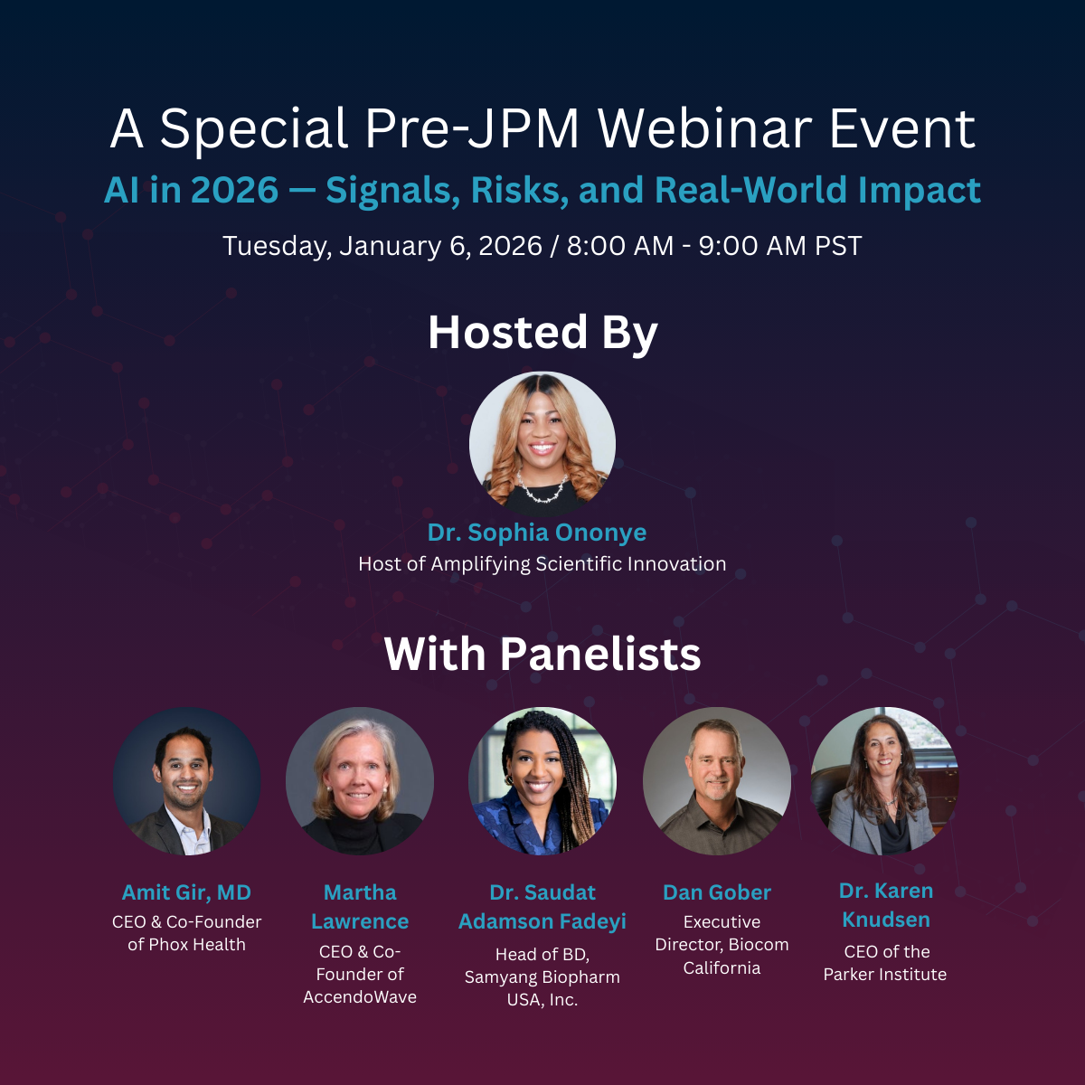 This must-attend webinar will cover all the topics and trends you need to know about AI & Biopharma in advance of JPM week in San Francisco, Jan 11-15, 2026